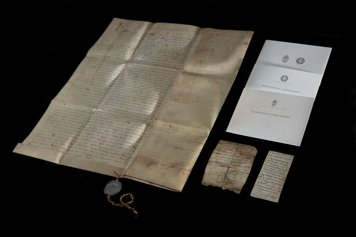 Certificazioni ufficiali di conformità e assoluta fedeltà ai documenti antichi originali rilasciati dalla Custodia del Sacro Convento e dall’Arcidiocesi di Spoleto - Norcia