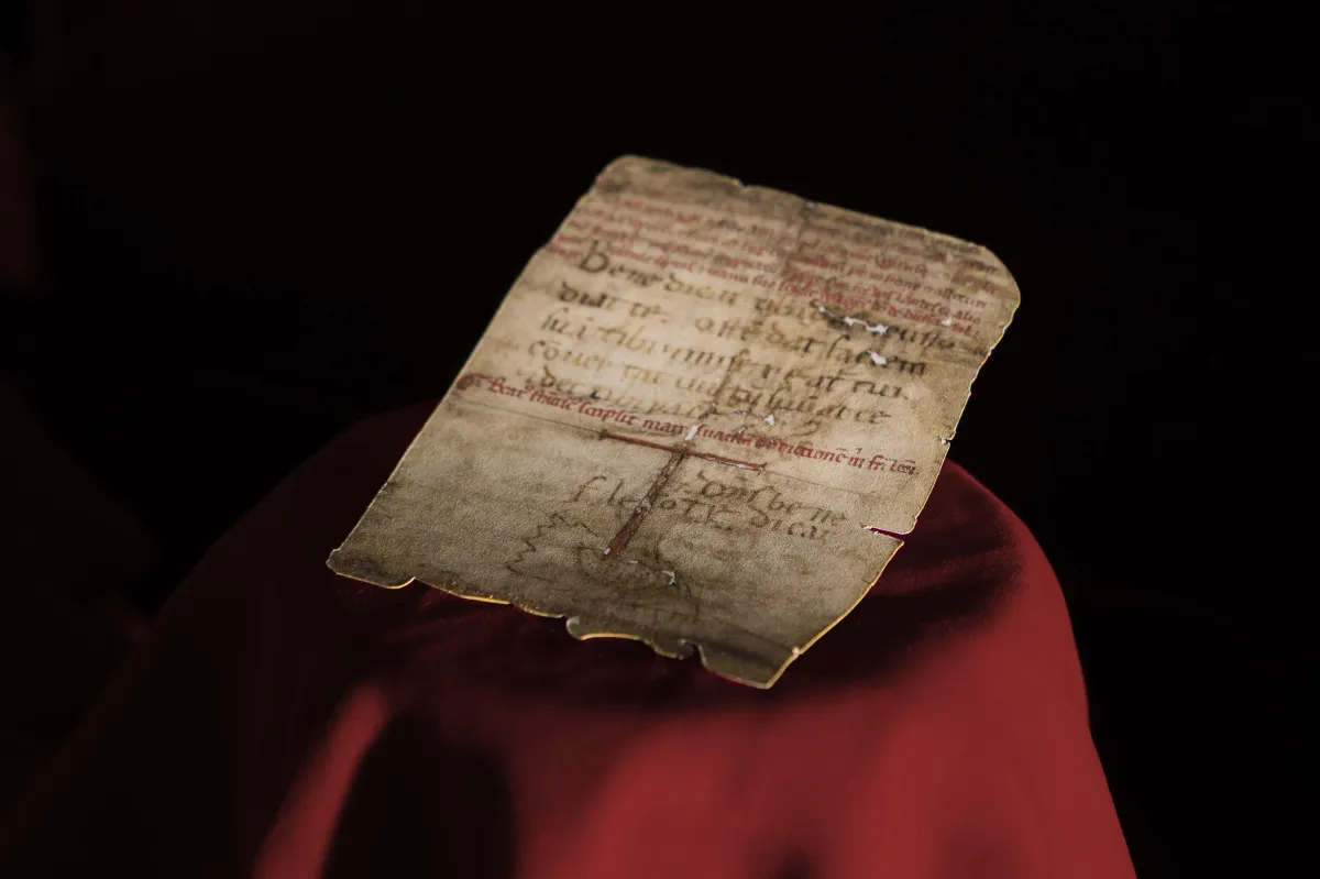 Il secondo documento è una delle due lettere superstiti vergate personalmente da San Francesco: nel lato carne, il piccolo frammento di pergamena, in precarie condizioni di conservazione, riporta le Laudes a Dei altissimi mentre sul lato pelo è la Benedizione a frate Leone.